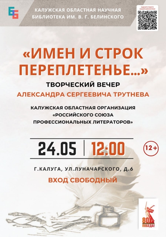 Много символичного в нашем мире. 24 мая мы празднуем День славянской письменности и культуры. И символично то, что известный поэт-юморист, член Калужской областной организации Российского союза профессиональных литераторов, а точнее, ее основатель и идейный вдохновитель Александр Сергеевич Трутнев именно в этот день празднует свой день рождения.