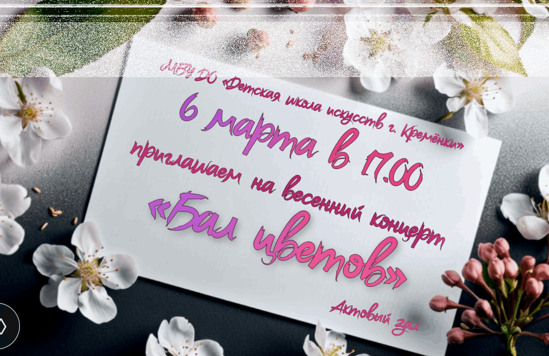 Мы с огромной радостью приглашаем вас в уютный зал нашей школы искусств. В этот вечер сцена превратится в цветущий сад, где каждый музыкальный номер будет подобен распускающемуся бутону. Юные таланты подарят вам целый калейдоскоп ярких номеров!