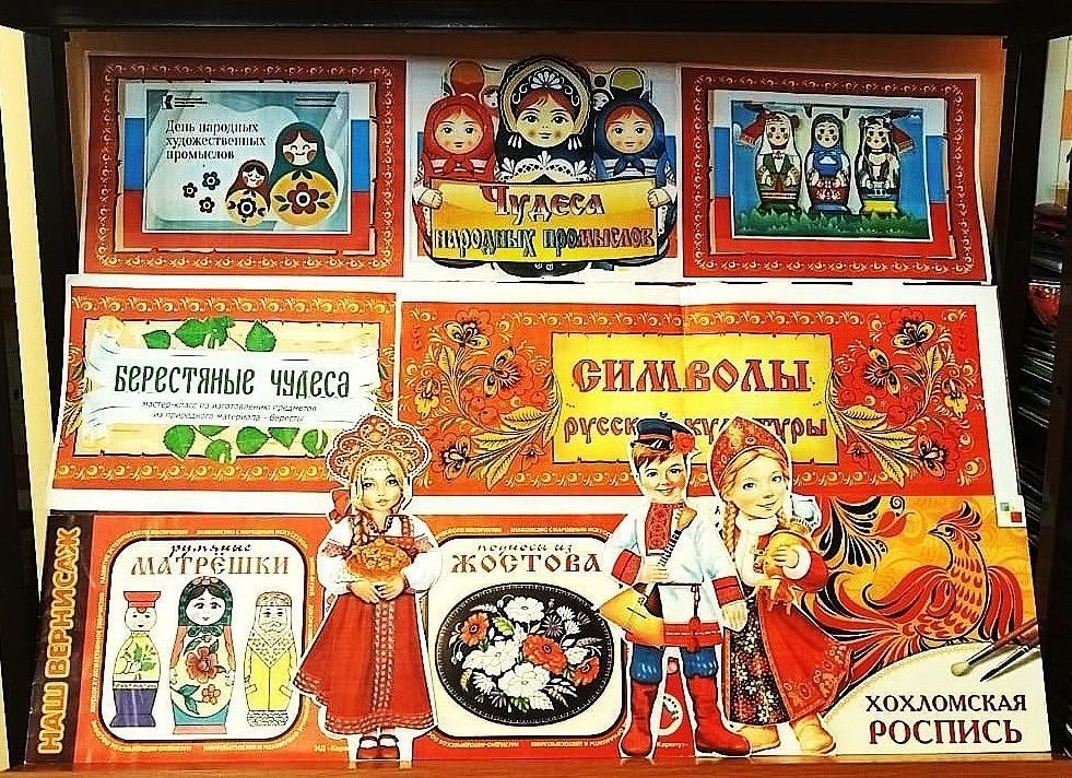 В 2022 году в России появился новый праздник — День народных художественных промыслов . Праздник ежегодно отмечается в предпоследнее воскресенье июня в знак уважения ко всем творцам, причастным к делу развития и популяризации художественных промыслов страны . В преддверии этого праздника библиотека подготовила для читателей тематическую выставку «Чудеса народных промыслов. Символы русской культуры». Посетители библиотеки имеют возможность посетить Мини-музей «Комната крестьянского быта и истории села Дворцы и соседних деревень» Дворцовского СДК и поучаствовать в познавательной экскурсии и викторине о народных промыслах Калужской и Дворцовской земли. Россия всегда была богата умельцами, которые бережно передавали своё мастерство поколениям. Так национальное достояние дошло и до нас, продолжая своё развитие, пусть и в новых реалиях.