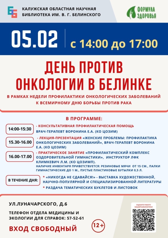 5 февраля – день для важных разговоров в библиотеке: вместе против онкологии в рамках Всероссийской недели профилактики онкологических заболеваний!