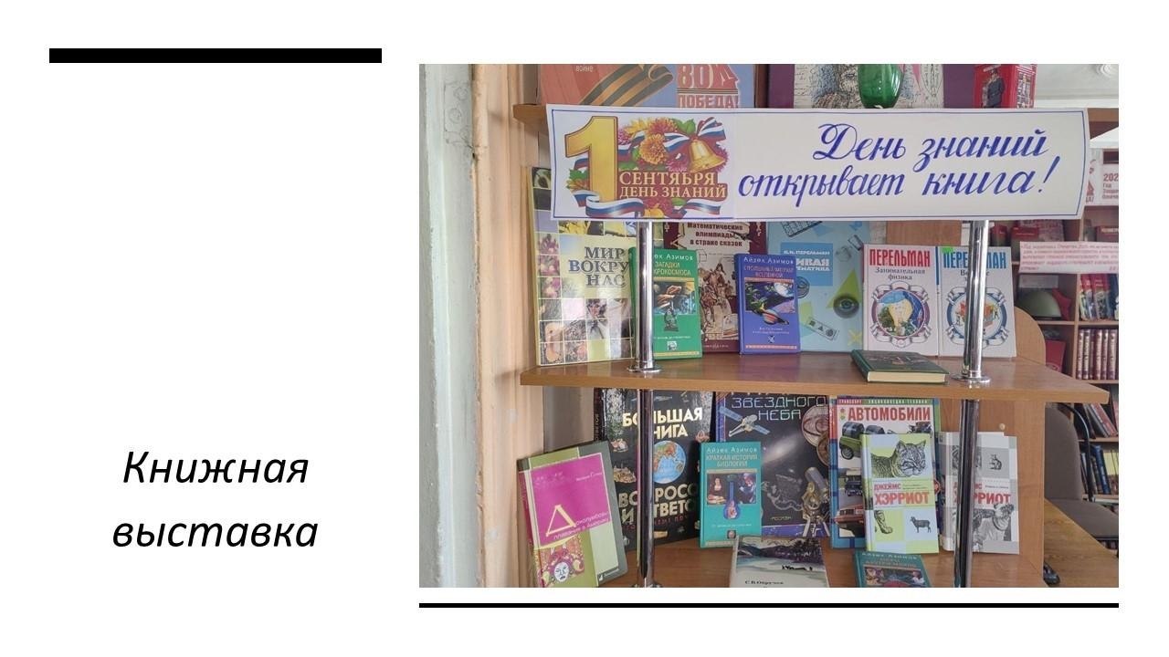 На абонементе библиотеки к этому знаменательному дню подготовлена специальная книжная выставка «День знаний открывает книга». На экспозиции представлена разнообразная литература: