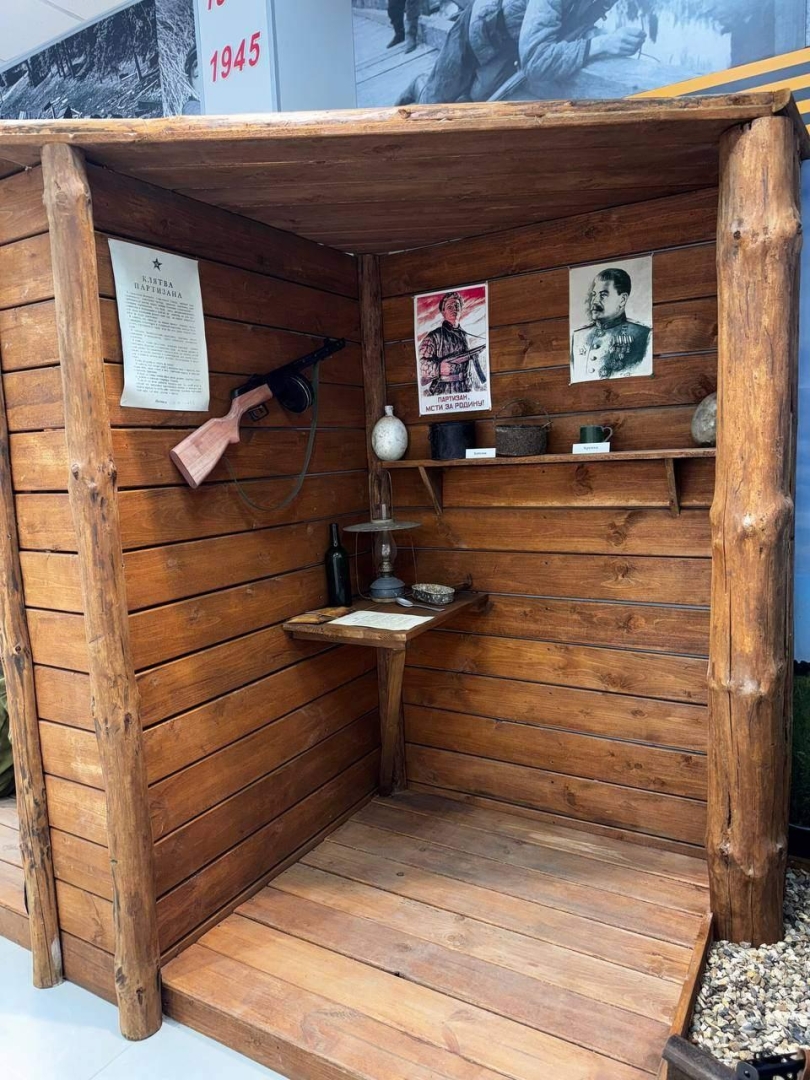 Партизанская землянка: Ощутите себя частью партизанского отряда, заглянув в воссозданную землянку. Здесь вы увидите образцы стрелкового оружия, которое помогало нашим бойцам бороться с врагом, и сможете представить себе суровые будни лесных воинов.