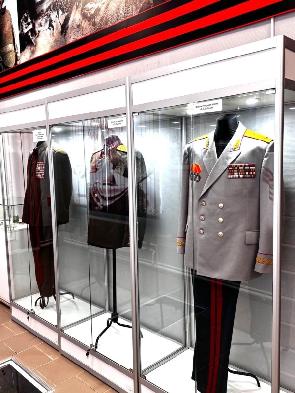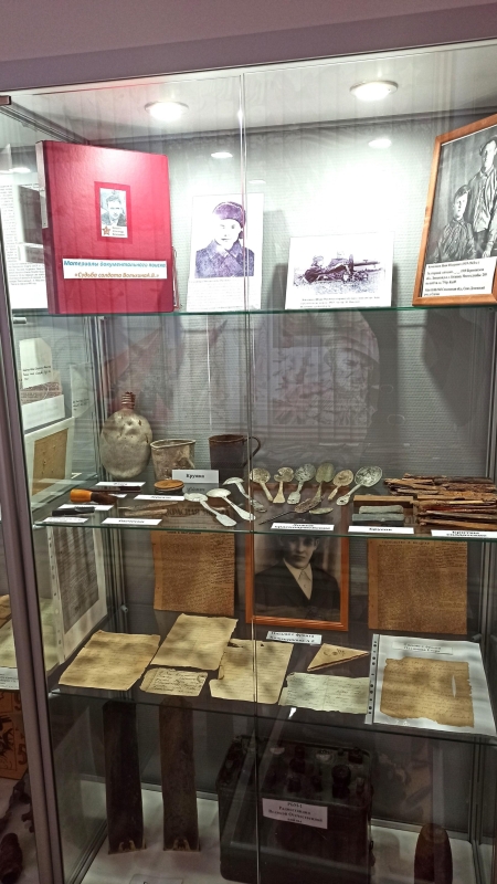 В витринах бережно хранятся предметы, рассказывающие о повседневной жизни солдат: от простых ложек и кружек до фляг и других личных вещей. Особую ценность представляют собой фронтовые письма, переданные в дар нашими посетителями. Кроме того, здесь представлены образцы военной формы выдающихся военачальников: генерала армии Д.Ф. Бобкова, полковника Н.П. Балояна и Героя Советского Союза генерала И.Н. Шкадова.