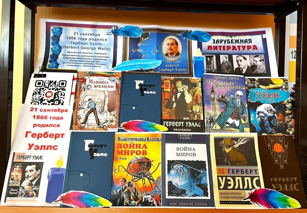 В честь этого события в библиотеке будет оформлена книжная выставка «Фантастические миры Герберта Уэллса». Будут экспонированы книги, имеющиеся в библиотеке. Для читателей подготовлены буклеты, викторины, книжная выставка, видео презентации и бук трейлеры, мастер классы, видео уроки и многое другое. Ждём всех в читальном зале библиотеки.