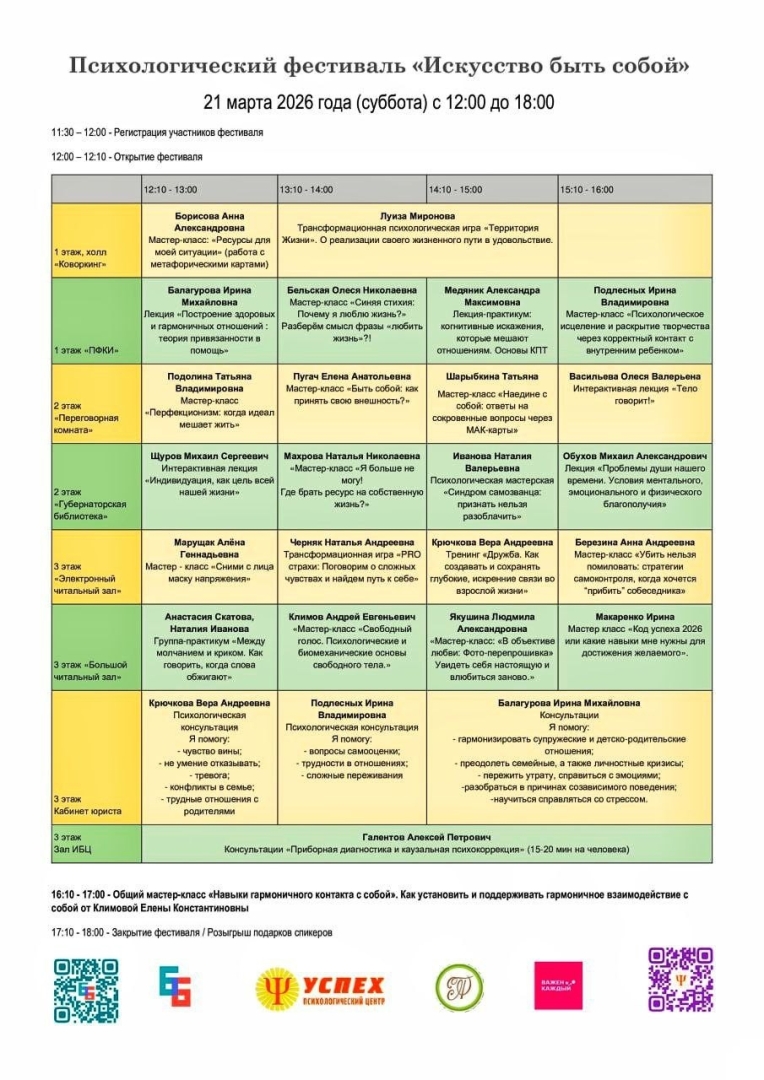 21 марта (суббота) с 12.00 до 18.00 наша библиотека превратится в огромное пространство для познания себя в атмосфере открытости, доброжелательности и приятия!