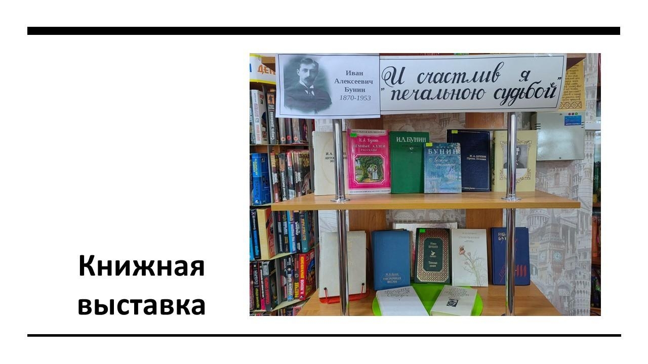 Знаменательная дата в истории русской литературы — 155-летие со дня рождения выдающегося писателя и поэта Ивана Алексеевича Бунина — отмечается особой выставкой организованной на абонементе центральной библиотеки. Экспозиция под названием «И счастлив я печальною судьбой» приглашает всех желающих познакомиться с творчеством мастера слова.