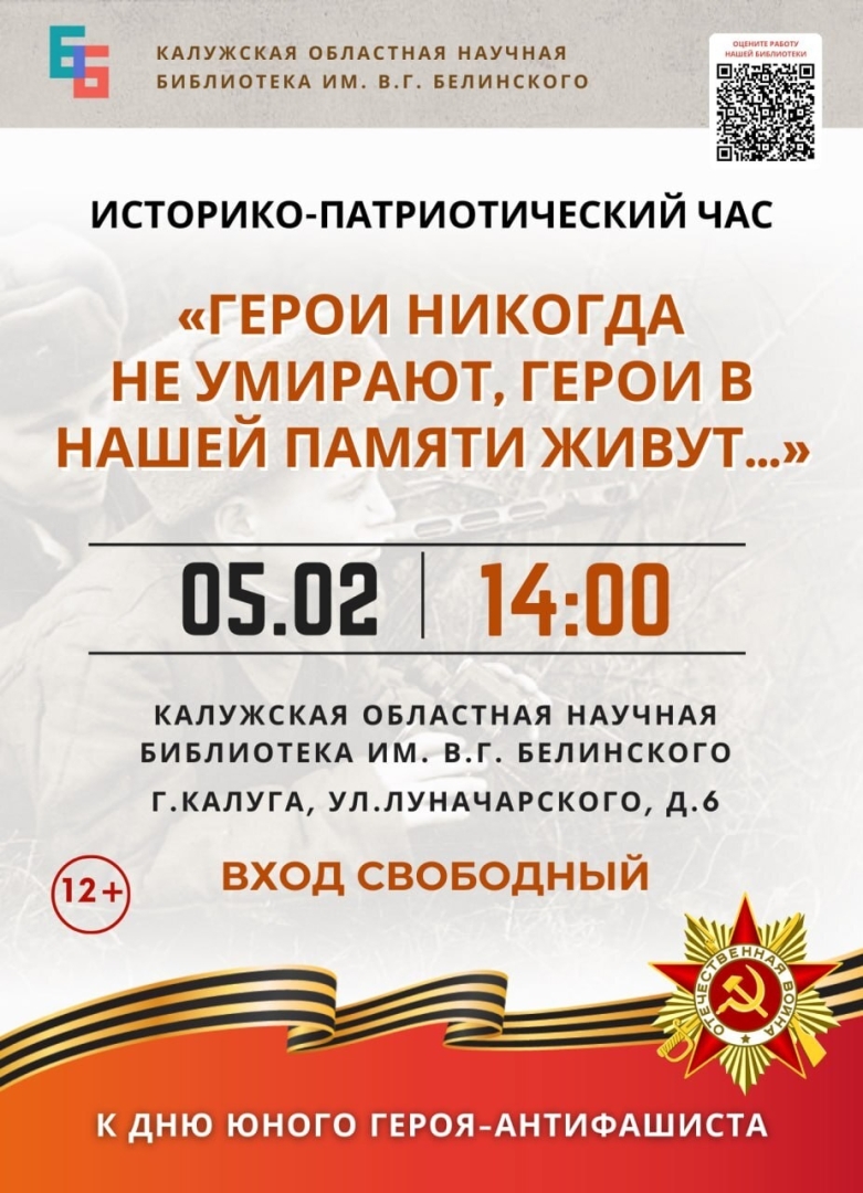 5 февраля, в преддверии Дня юного героя-антифашиста, в библиотеке пройдет историко-патриотический час «Герои никогда не умирают, Герои в нашей памяти живут…».