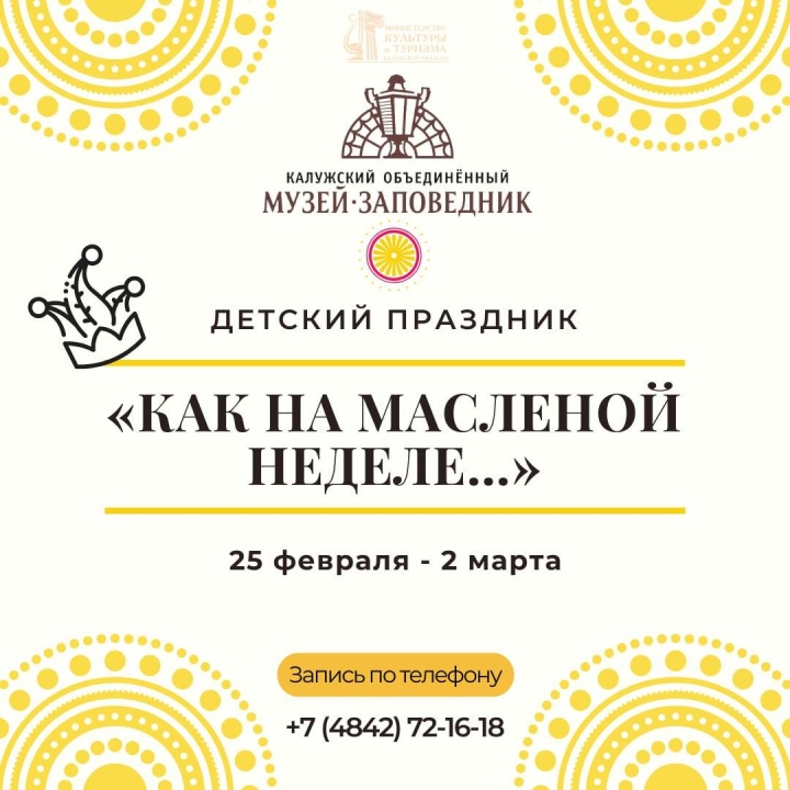 С 25 февраля по 2 марта в Музейно-краеведческом комплексе «Усадьба Золотарёвых» пройдёт яркое и увлекательное мероприятие для детей, посвящённое Масленице.