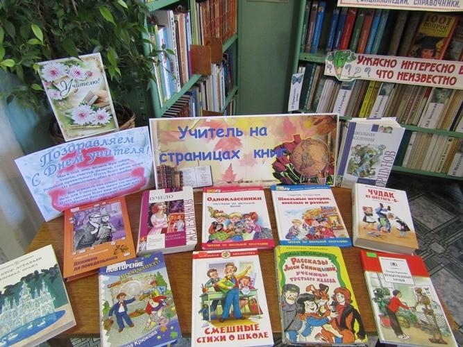 Книжная выставка «Школьная вселенная» в детской библиотеке. На ней представлены художественные произведения о школе: рассказы Виктора Драгунского, повесть Владимира Железникова «Чудак из шестого «Б»», фантастическая повесть Евгения Велтистова «Приключения Электроника», автобиографическая повесть Корнея Чуковского «Серебряный герб», рассказ Валентина Распутина «Уроки французского», а также современные произведения Евгения Клюева, Андрея Жвалевского и Евгении Пастернак.