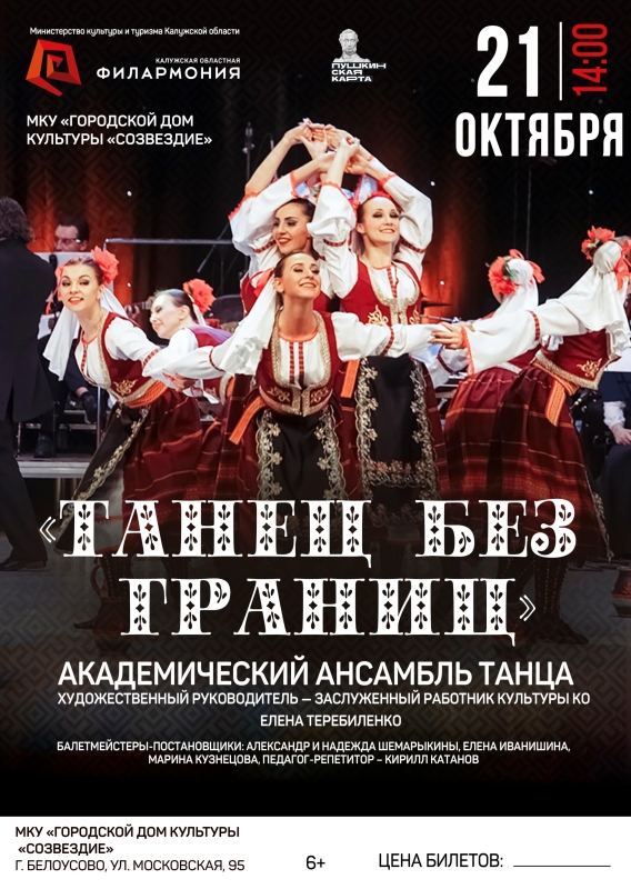 – Академический ансамбль танца Калужской областной филармонии – художественный руководитель Елена Теребиленко;
