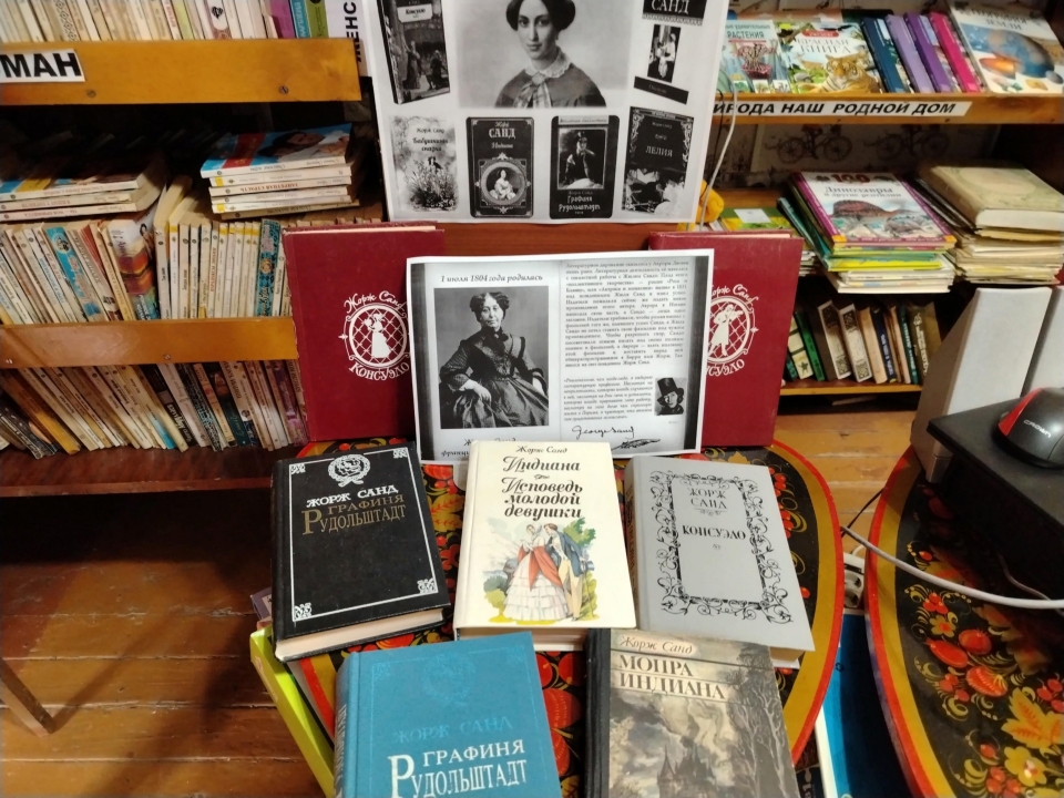 В нашей библиотеке оформлена выставка книг Жорж Санд.