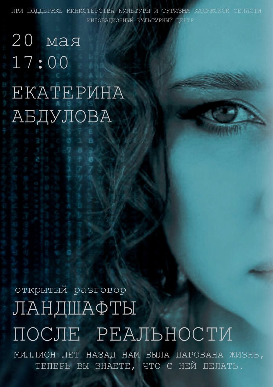 В рамках XIII Фестиваля современного искусства «Циолковский Фест» 20 мая в 17:00 открытый разговор Екатерины Абдуловой «Ландшафты после реальности».
