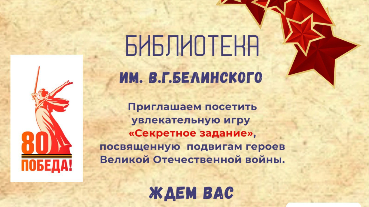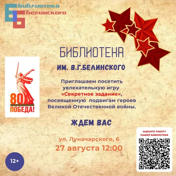 27 августа в библиотеке им. В.Г. Белинского пройдет мероприятие «Секретное задание».