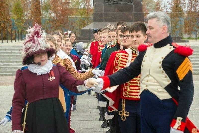 В день праздника Покрова Божией Матери и накануне празднования 213-летия Малоярославецкого сражения на площади у стелы военной славы города Малоярославца состоится открытый исторический бал XIX века. Молодые девушки и юноши в исторических костюмах продемонстрируют несколько бальных танцев – торжественный полонез, мазурку, польку. Участники познакомятся с традиционными танцами, которые проходили в больших дворцах, где ряды танцующих расходились и сходились буквально как на параде, что требовало значительной подготовки и дисциплины.
