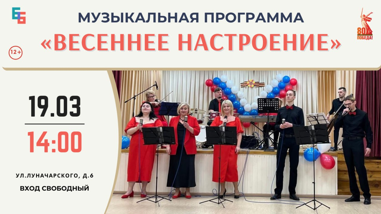 19 марта в 14-00 в библиотеке Белинского состоится музыкальная программа «Весеннее настроение», которую представят инструментальный ансамбль «Пламя» и вокальный ансамбль «Вера».