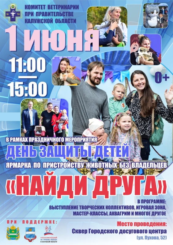 Приглашаем всех на ярмарку по пристройству животных без владельцев "Найди друга", которая пройдет в рамках празднования Дня защиты детей!
