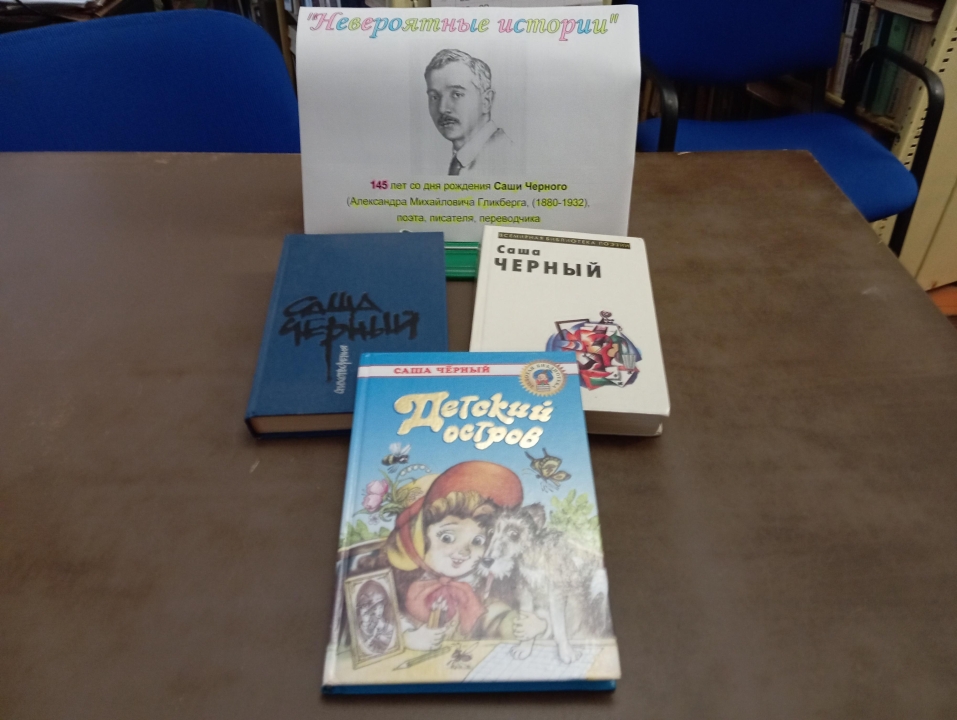 145 лет со дня рождения Саши Черного (Александра Михайловича Гликберга, 1880-1932), поэта, писателя, переводчика. он получил широкую известность, как автор популярных лирико-сатирических стихотворных фельетонов. Однако его интерес к творчеству для малышей не был случайным. Писателя отличали любовь к детям и умение находить с ними общий язык. Произведения писателя нравиться детям благодаря сочетанию юмора, фантазии и уважительного отношения к детству. Представленные на книжной выставки библиотекарь порекомендует ребятам книги для совместного чтения с родителями. Ведь его стихи и рассказы одинаково увлекательны для детей и для взрослых. Раскрыв на угад любую страницу ребята будут очарованы прелестью красок и теплотой содержания.