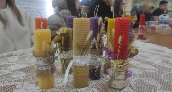 Практическая чать урока включает изготовление свечи из натуральной вощины. Свечи из вощины – тонкой рифленой восковой пластины, которая нужна пчелам в улье для устройства сот, – издревле изготавливались в Медыни, которая всегда славилась пчеловодством. Для производства и украшения используются натуральные материалы, которые составляют традиции города Медынь: льняная пенька, натуральное кружево, сушеные цветы и травы. Обучающий урок будет интересен и детям и взрослым, школьным и студенческим экскурсиям. Он прекрасно подходит для семейного посещения.