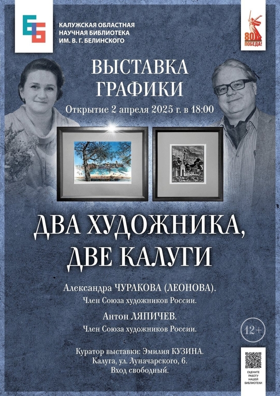2 апреля в 18:00 в библиотеке им. В.Г. Белинского состоится открытие выставки графики Александры Чураковой (Леоновой) и Антона Ляпичева «Два художника. Две Калуги»