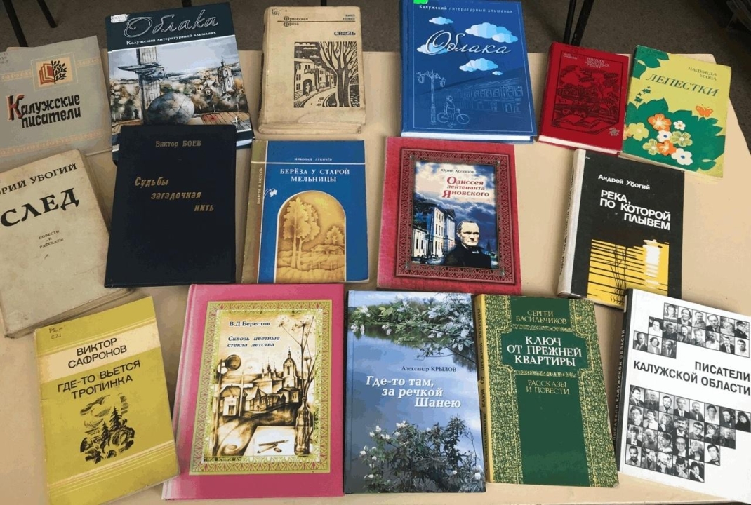 На выставке книг читатели смогут ознакомиться с творчеством писателей и поэтов, уроженцев Калуги и области и узнать много интересного.