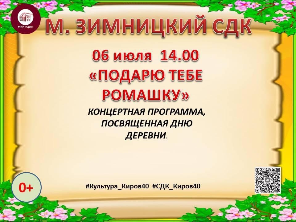 На площадке возле Малозимницкого СДК состоится большая праздничная программа.