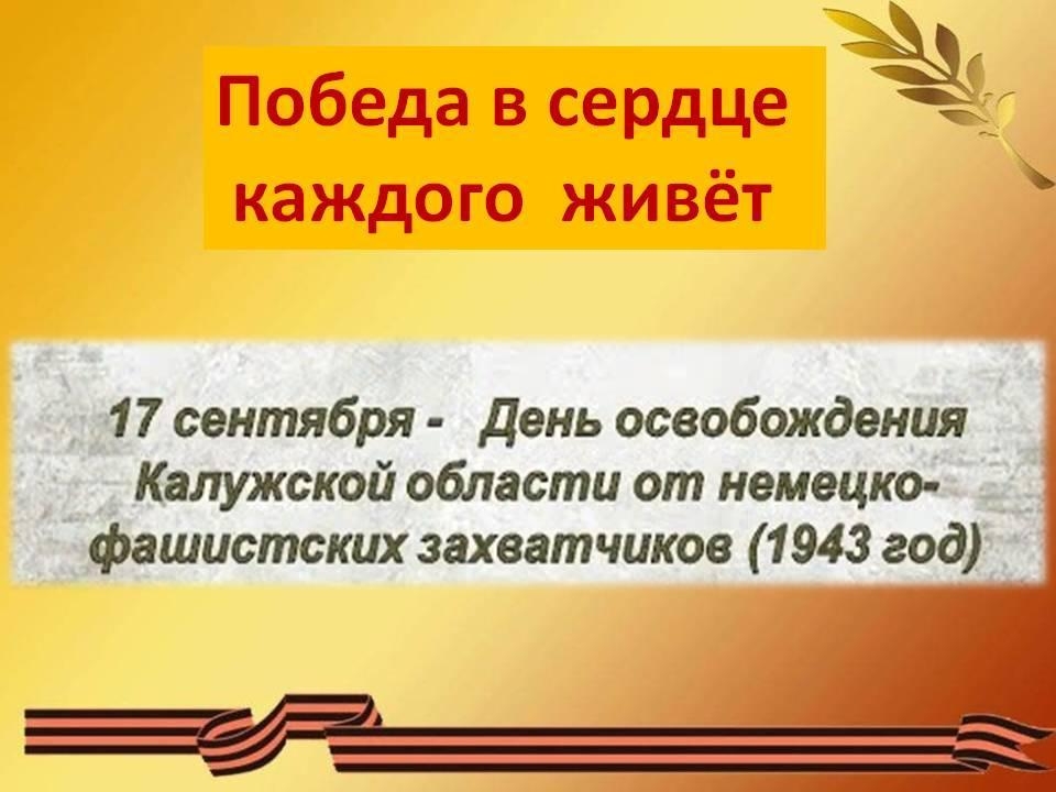 Дом культуры п. Юбилейный приглашает жителей и гостей Сельского поселения поселок Юбилейный на познавательную программу «Это нашей истории строки», посвященную освобождению Калужской области от немецко-фашистских захватчиков. Участники мероприятия узнают, что за годы Великой Отечественной войны из Калужского края было призвано 175464 человека. В период войны погибло более 80 тысяч калужан и более 50 тысяч пропали без вести. Боевые действия на территории Калужской области начались 2 октября 1941 года и продолжались долгих 715 дней.