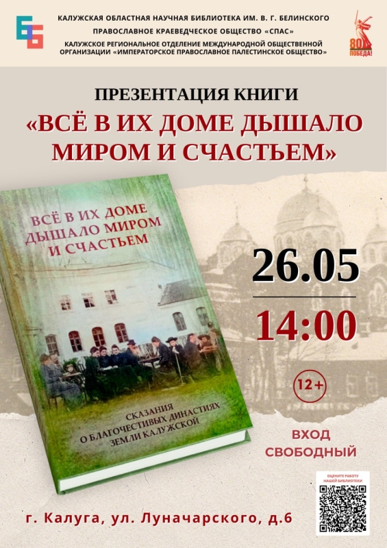 Приглашаем всех желающих посетить презентацию книги «Всё в их доме дышало миром и счастьем». Сказания о благочестивых династиях земли Калужской.