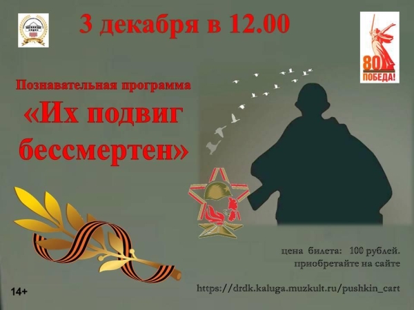 Ко Дню Неизвестного солдата для молодого поколения пройдет познавательная программа, посвященная подвигу воинов, отдавших свои жизни за Родину.