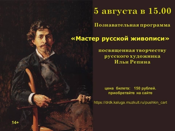Для молодого поколения состоится познавательное мероприятие, посвященное дню рождения выдающегося русского художника И. Е. Репина.