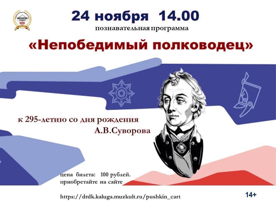 В ознаменование дня рождения выдающегося русского полководца и основоположника отечественной военной теории Александра Васильевича Суворова для молодого поколения будет проведена познавательная программа.