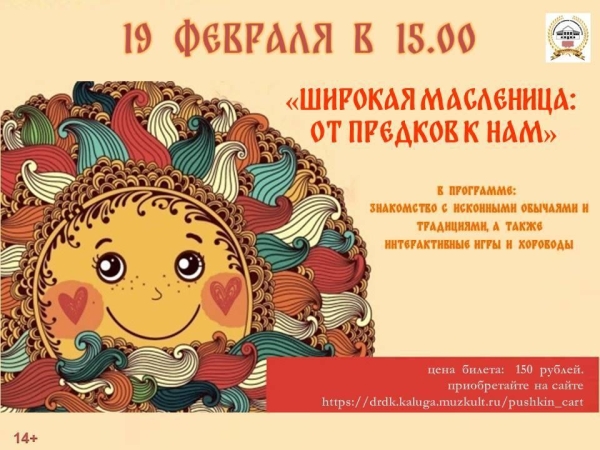Для молодого поколения пройдет познавательное фольклорное мероприятие, посвященное древнему празднику Масленица. В ходе мероприятия участники познакомятся с символикой каждого дня недели, значением сохранившихся традиций, а также узнают историю возникновения блинов и их связи с символом солнца. Мероприятие позволит погрузиться в атмосферу старинных обычаев, которые до сих пор актуальны. Участие в играх и хороводах способствуют развитию ловкости и сообразительности, а также дает возможность почувствовать дух вековых обрядов, передаваемых из поколения в поколение.