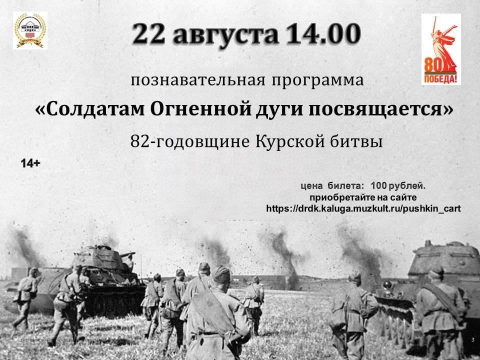 В честь 82-й годовщины разгрома Курской битвы – одного из решающих сражений Великой Отечественной войны – будет проведена познавательная программа для молодого поколения. Мероприятие станет выражением памяти и почтения героям, отважно боровшимся за свободу Родины.