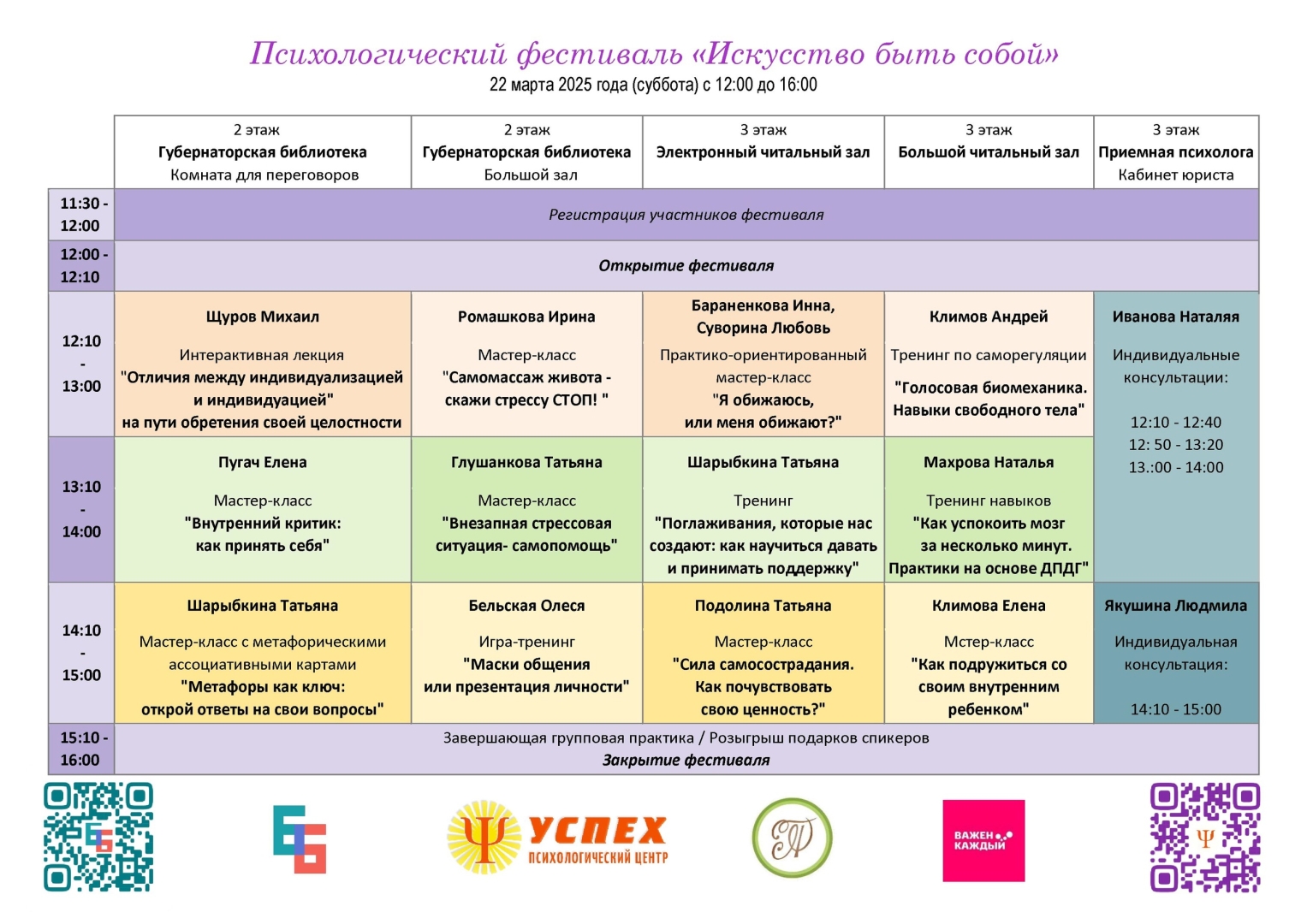 Не планируйте ничего, потому что именно в этот день с 12 до 16 мы организуем для вас в библиотеке психологический фестиваль «Искусство быть собой».