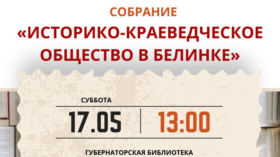 17 мая в 13:00 приглашаем всех, кто увлекается краеведением, на очередное собрание «Историко – краеведческого общества в Белинке».