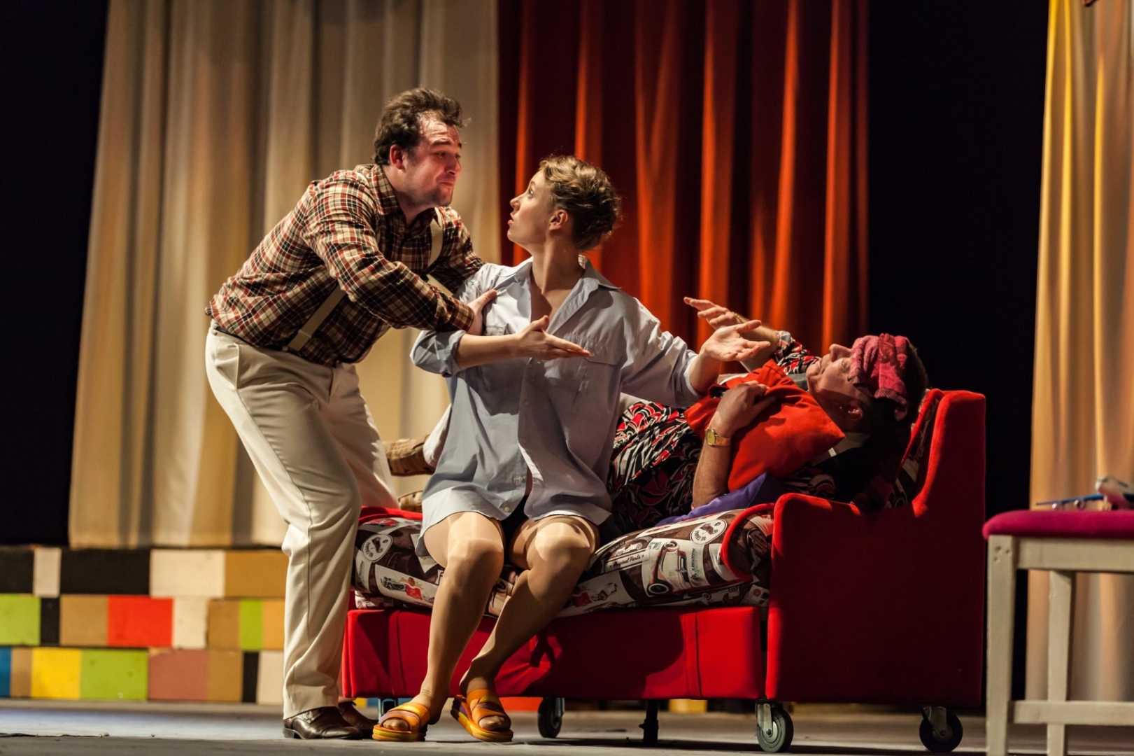 Обаятельный архитектор-ловелас Бернар придумал беспроигрышную комбинацию: у него сразу три невесты-стюардессы, не подозревающие о существовании друг друга. Одна взлетает, другая приземляется, а третья в этот момент находится... В один прекрасный день отлаженный механизм Бернара дает сбой.