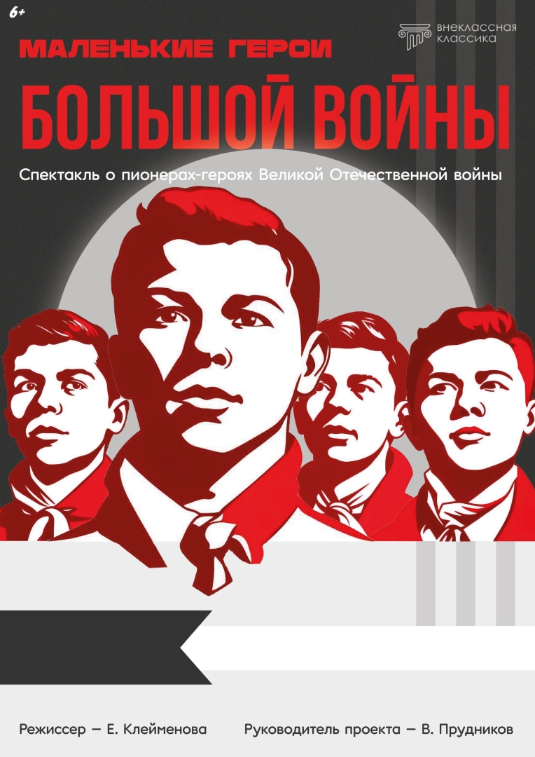 Спектакль «Маленькие герои большой войны» создан с просветительской целью. Он рассказывает об их сверстниках во время Великой Отечественной Войны, о пионерах, которые помогали, а зачастую и сами принимали активное участие в борьбе с врагом, о самоотверженности, о самопожертвовании ради общей великой цели. Спектакль включает в себя шесть историй об известных пионерах – героях Великой Отечественной войны таких как Леня Голиков, Катя Извекова, Марат Казей, Валя Зайцева и др. Также в театральное представление интегрированы тематические патриотические песни и стихотворения довоенных, военных и послевоенных лет.Уникальность спектакля в том, чтобы дать возможность подрастающему поколению не просто узнать о подвигах пионеров-героев, а через эмоциональное восприятие проассоциировать себя с юными героями Великой Отечественной войны, поставить себя на их место, прочувствовать героизм и бесстрашие в борьбе с врагом. Режиссер и автор пьесы – Екатерина Клейменова.