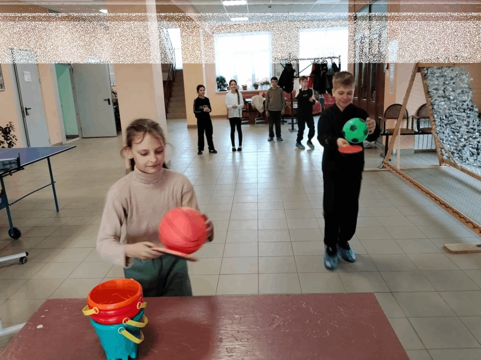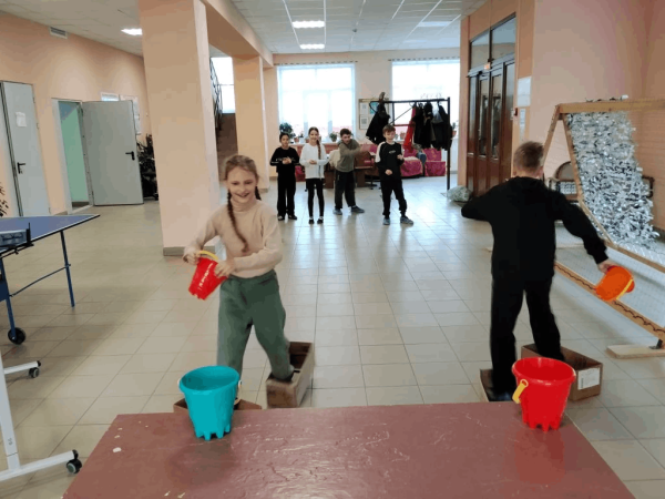 1) "Коромысло с вёдрами". Участники будут переносить пластмассовые шары.