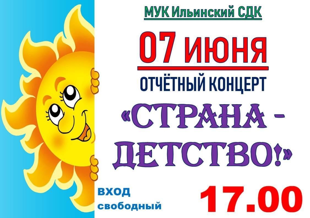 7 июня на сцене МУК Ильинский СДК пройдет праздничный отчетный концерт детской самодеятельности, посвященный Дню защиты детей.