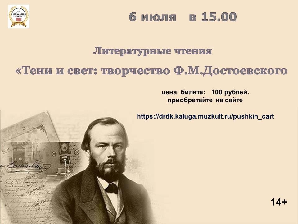 В ходе презентации будут представлены рассказы о жизни и творчестве Ф. М. Достоевского. Участники мероприятия примут участие в литературной викторине по произведениям писателя и смогут прочитать любимые главы из его повестей и романов.