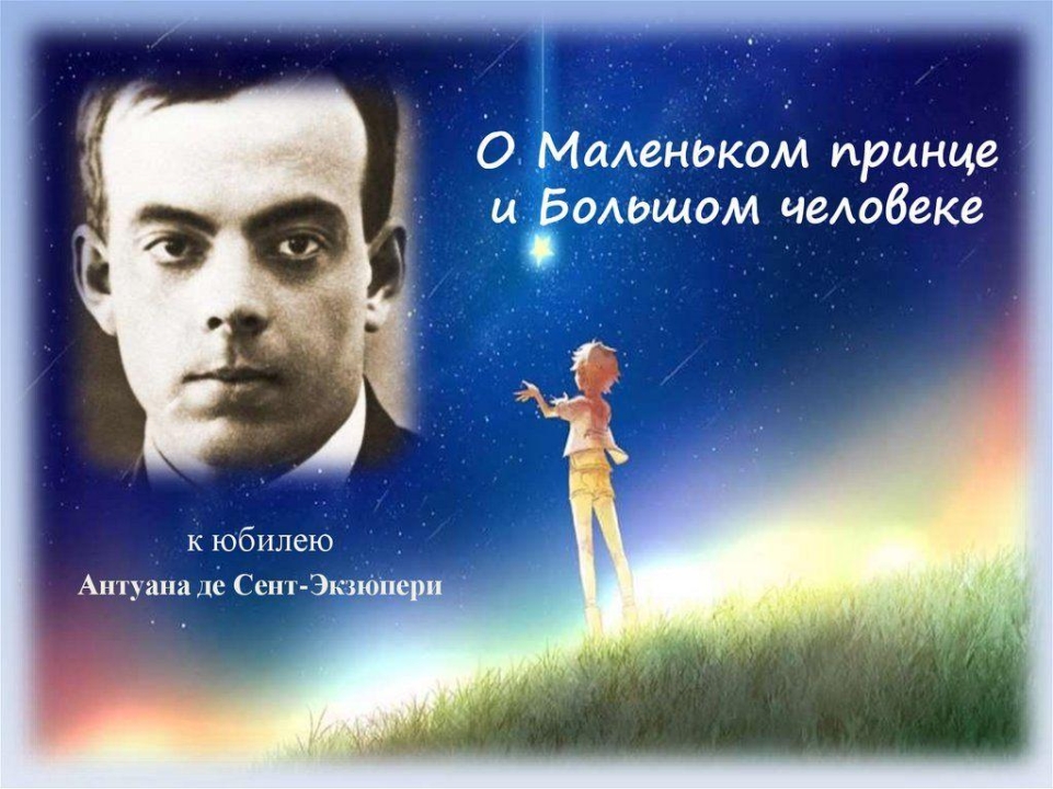 За свою короткую, но богатую событиями жизнь Сент-Экзюпери успел написать ряд произведений, глубоких и философски значительных по содержанию: «Южный почтовый», «Планета людей», «Ночной полет», «Военный летчик», «Маленький принц», «Цитадель». Мировую популярность писателю принесла аллегорическая повесть-сказка «Маленький принц». В библиотеке пройдет литературная викторина по сказке «Маленький принц», где ребятам предстоит ответить на вопросы .