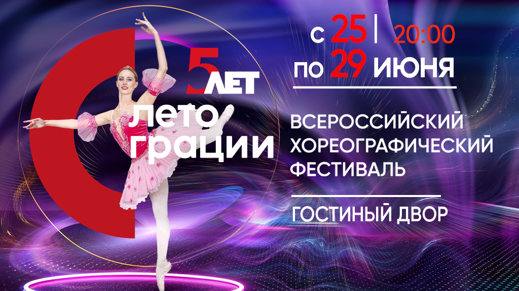 С 25 по 29 июня Калуга превратится в столицу танца! Приглашаем вас на V Всероссийский хореографический фестиваль «Лето грации» в «Гостином дворе».