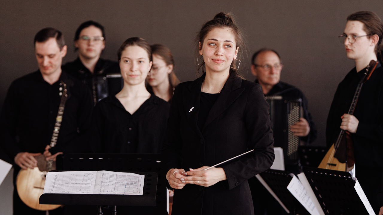 Оркестр русских народных инструментов, художественный руководитель и дирижер С.Р.Уголькова.