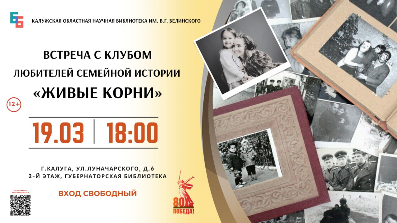 19 марта в 18:00 в Губернаторской библиотеке состоится встреча с организаторами клуба любителей семейной истории «Живые корни».