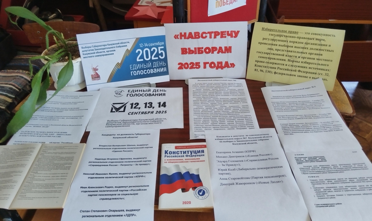 важные для региона выборы - Губернатора Калужской области, депутатов Законодательного Собрания Калужской области, органов местного самоуправления. В библиотеке к этому событию будет оформлена информационная выставка. На встрече с читателями познакомим с зарегистрированными кандидатами на пост главы региона, депутатами в Законодательное Собрание Калужской области и органов местного самоуправления. Также сообщим какие политические партии будут принимать участие в голосовании по единому избирательному округу на выборах депутатов Законодательного Собрания Калужской области и как вообще можно будет проголосовать на предстоящих выборах.
