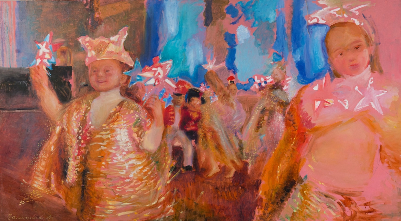 Ее живопись оптимистична и радостна. Автор работает в таком насыщенном цветом, декоративном и самобытном стиле, что поневоле заставляет ликовать при взгляде на ее полотна. Счастливые улыбки и детский смех, волшебное ощущение приближающегося праздника – вот суть этих живых картин. Таковы и представленные на выставке работы Анастасии – «Датский карнавал» (холст, масло, 2015 г.), «Николо Ленивец» (холст, масло, 2023 г.), «Новые концепции движения» (холст, масло, акрил, картон, 2018 г.)