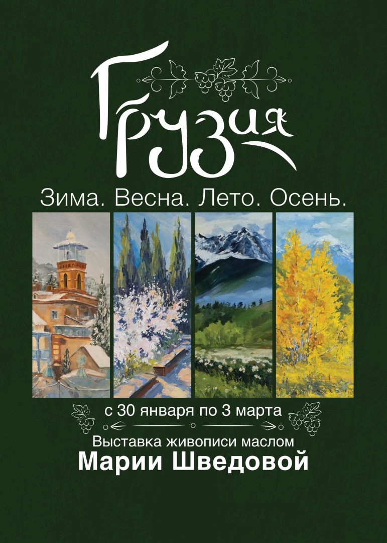 Эта выставка посвящена Грузии- красивой и гостеприимной стране, которая прекрасна во все времена года: и зимой, и весной. и летом, и осенью.