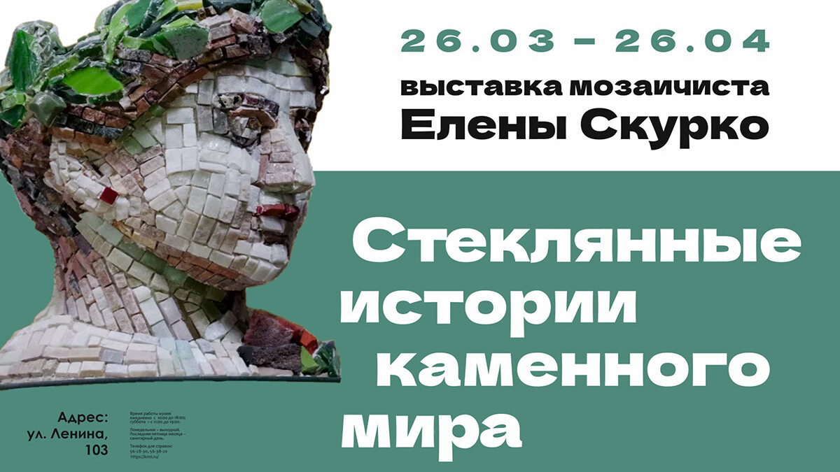 С 27 марта в ИОВЦ КМИИ (ул. Ленина, 103) начинает работу персональная выставка «Стеклянные истории каменного века» мозаичиста Елены Скурко.