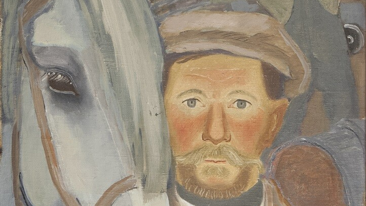 Свет рассеянный, ровный, характерный для хмурого дня. Он не драматизирует сцену, а лепит объем, показывая фактуру шерсти лошади и грубой ткани одежды.