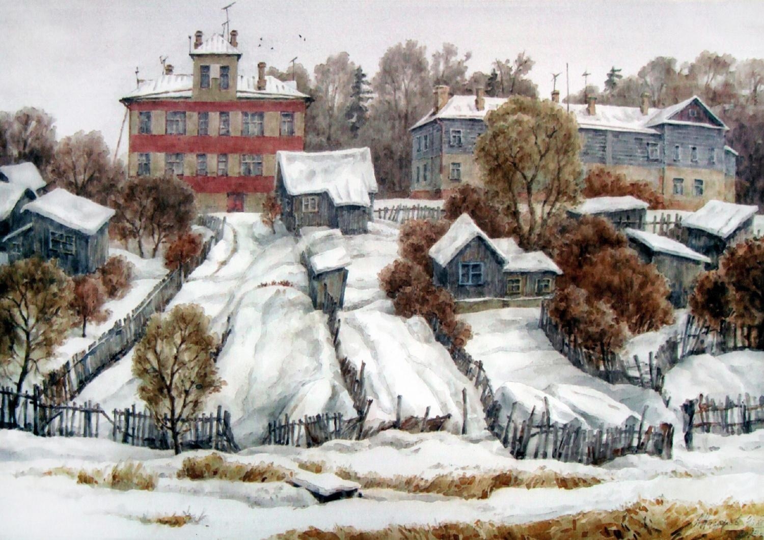 «Палитра наукограда» – это выставка художников Троицкого отделения Союза художников Подмосковья, образованного в 2008 году. В экспозиции представлены работы 23 авторов. Основателем и первым председателем отделения стал Александр Константинович Назаров (1944–2025 гг.), известный троицкий мастер и педагог, заслуженный работник культуры России, почетный гражданин Троицка. Его работы выполнены в классических жанрах: пейзаж, портрет, цветочный натюрморт. Александр Константинович Назаров – мастер акварели. Написанные в классической многослойной технике, сдержанные по колориту акварельные пейзажи отличаются глубиной и содержательностью. В коллекции представлен пейзаж «Конец марта», на котором изображен уголок леса в окрестностях Троицка. А работа «Троицкий Шанхай» показывает старый город, вид которого остался только на бумаге.