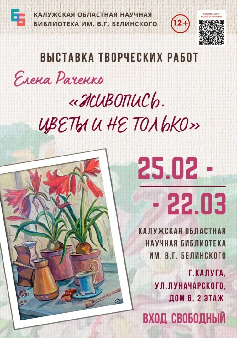 С 25 февраля по 22 марта марта в библиотеке пройдет выставка творческих работ Елены Раченко «Живопись. Цветы и не только».